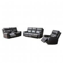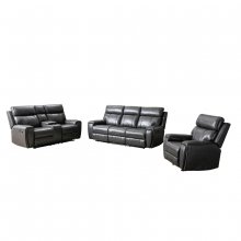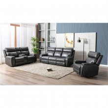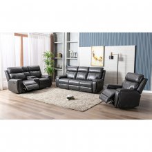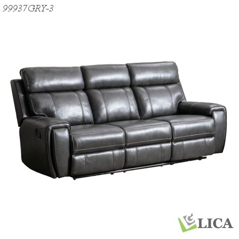 A distinguished profile with tailored detailing highlights the Carnegie reclining sofa collection. Swathed in breathable yet supple rich grey leather gel, piped seams and contrast stitching ensure this sofa has an old world feel with a breath of contemporary freshness that lends itself to a variety of décor settings. Thickly stuffed headrests and padded wraparound armrests testify to an impeccable attention to comfort, especially with dense foam over pocket springs to ensure long-lasting, relaxed seat construction. Double tab-pull mechanisms at either end give you the option to relax further by reclining with a simple pull of the latch. Also available in black leather gel.