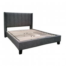When you want your bedroom to look like it comes straight out of a magazine, you need the simple elegance of the Clara Bed. Fully upholstered in dark grey linen-like fabric, the padded mansion headboard has channel tuft detailing and silver-toned nailhead trim outlining the profile, guaranteeing visual interest with its polished charm. Sturdy hardwood and engineered wood frame construction atop exposed legs in a dark poplar finish provide long-lasting durability. The platfom design allows you to place your mattress directly on the raised slats and skip the foundation and box-spring altogether. This contemporary bedroom offering is more than a place to lay your mattress - let the Clara be your refuge.