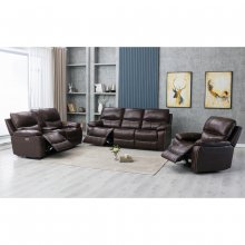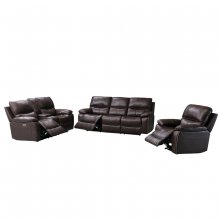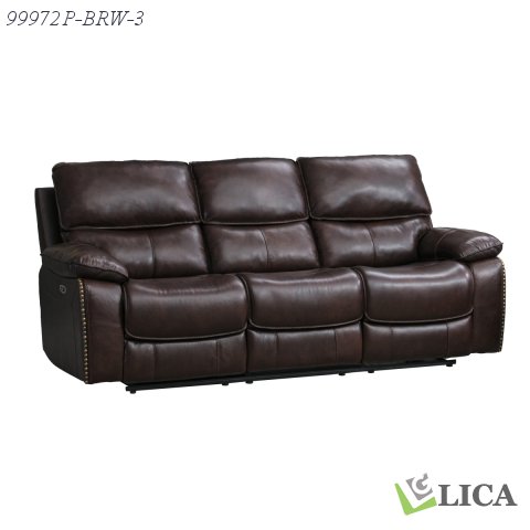 Transitional detailing meets the ultimate in padded comfort with the dapper Gilbert power reclining collection. Gorgeous brown top grain leather is one of this sofa's standout features, draping every surface your skin touches while a high quality PVC-match covers the backs and sides for a stylish and cost effective approach to upscale upholstery. Extra padding fills the pillowy armrests and substantial headrests to give you all the support you need, but never fear - contrast stitching and brass nailhead trim accenting ensures the Gilbert retains an attractively tailored form. Dual side-mounted power controls with built-in USB ports are easy to operate and grant you adjustable reclining positions at the touch of a button. The Gilbert sofa is one living room centerpiece you won't want to live without.