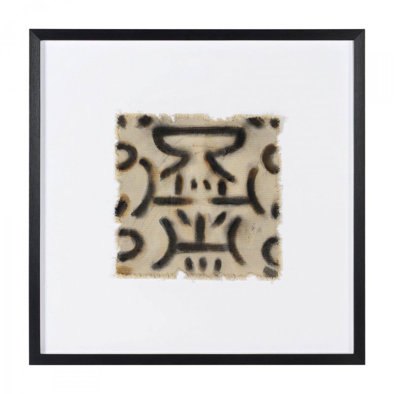 Archeological influences shine brightly from these four framed wall art designs. While each piece showcases a different arrangement, they all perfectly complement and contrast one another. Arranged amid wood and leather furnishings and details, the creative quality of these framed wall decor pieces is optimally enhanced. Product Details: