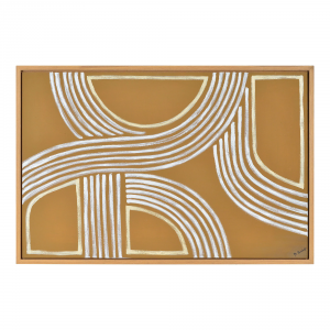 Gilded glamor meets graphic design in this eye-catching art canvas painting. An optimal addition to a gallery wall or a piece to enhance an unadorned area of the home, this work of art's simple design allows for endless arrangement potential. The white oak frame is well suited for a contemporary organic interior; meanwhile, the gold palette makes it just as fitting for a luxe space. Product Details: