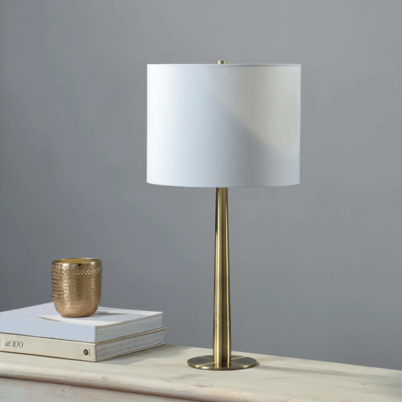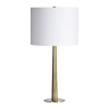 Suitable for mid-century modern, contemporary or glamorous classic interiors, this set of table table lamps requires no additional accessories to elevate a space. Constructed of iron with an antique brushed brass finish, these table lamps radiate warmth while maintaining a sleek sophistication. The unique structure adds an unexpected quality to this design and makes it equally suitable for cozy and streamlined spaces alike. Product Details: