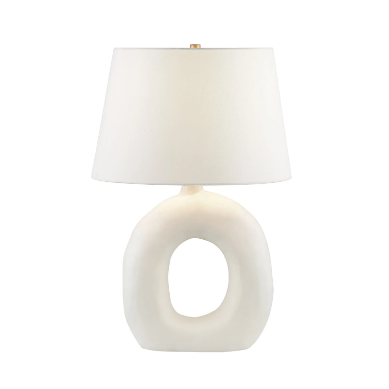 Simple in palette but significant in design, this table table lamp has an architecturally inspired quality that is reminiscent of a sculpture. This piece completes the designer-forward energy of the room it's set within. Set in a living room or entryway, this table lamp is best styled with pieces that are modern but have heritage influences. Product Details: