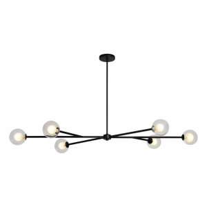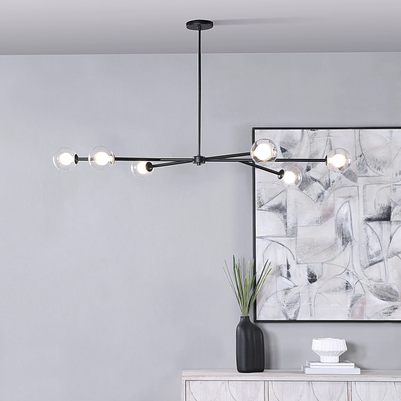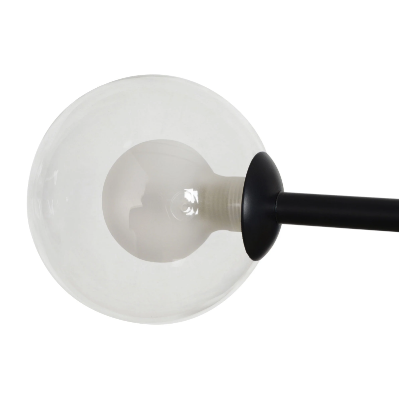 A perfect blend of creative design and sleek simplicity, this ceiling light fixture elevates the interior it's set within without overpowering it. Featuring a matte black iron structure and uniquely shaped bulbs, the unique structure of this ceiling light fixrture allows a glow to reach every corner of a room. When set in a kitchen space, everyday routines and special gatherings are equally enhanced. Product Details: