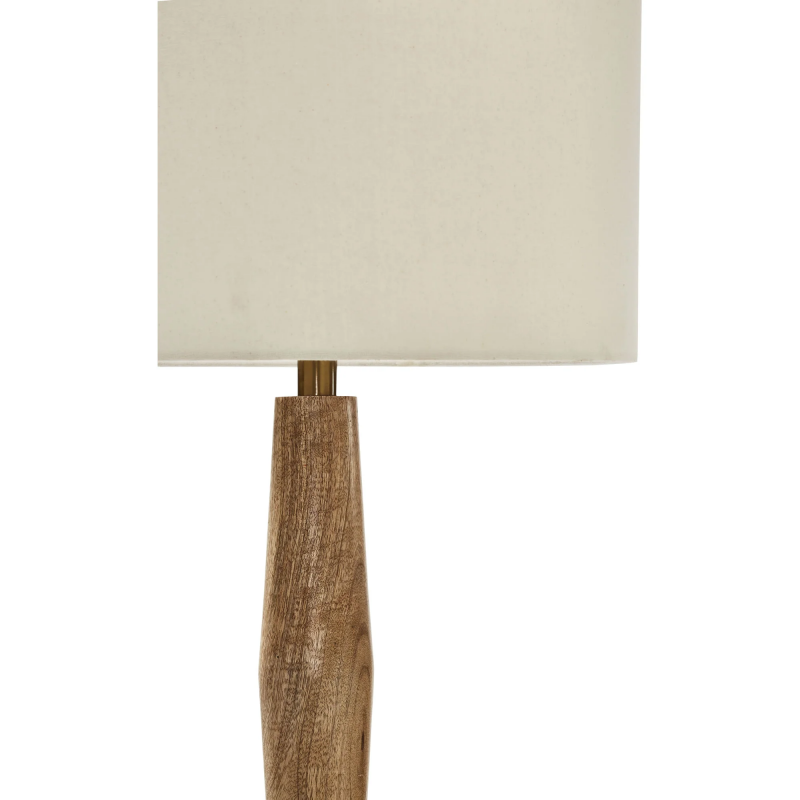The warm appeal of classic wood design is on full display in this floor lamp. Set within the traditional bedroom or living room interior, it serves as a catalyst for moments of comfort. Featuring natural mango wood and a linen shade, it has a natural color scheme that is effortlessly calming. Product Details: