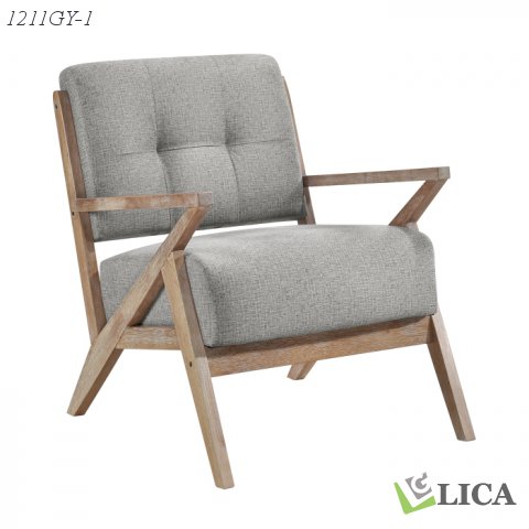Angled lines intersect to create the modern profile of the Ollen Collection. The rusticated solid wood frame is highlighted with an antique walnut finish. The gray fabric upholstery that covers the seat and back of the chair will serve as a complement to your home’s décor. The padded seatback features tufted contouring for added accent.