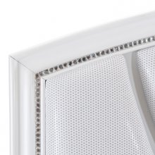Visually mesmerizing, light dances off the accentuating details of the elegant Aria Collection. The eye-catching iridescence of the California King headboard’s upholstered fabric panels is illuminated with back-lit LED while the embedded acrylic crystal hardware that fronts each drawer sparkles against the bright white finish of the collection. Additional storage within your bedroom comes in the form of the footboard’s drawers, their placement a convenient location for clothing or linens.