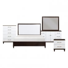Tasked with executing a design that encompasses the trademarks of contemporary design while including hints at a glamorous lifestyle, the Niles Collection perfects the look. White finished routed panels front the queen headboard while cherry-finished framing and gold-finished trim provide further accent. The cherry-finished low-profile footboard of the bed provides an unencumbered view of the panel headboard.