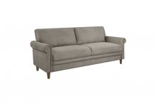 The Kinsale Collection is a classic pairing of classic elements to create a traditional addition to your home’s living room. The sofa and love seat’s rolled arms feature nailhead trim, the accent’s presence lending to the timeless style. The grayish-brown fabric upholstery pairs with the walnut finish of the wood support legs, furthering the classic look.