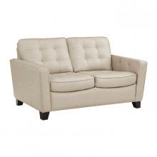 The retro-modern design that defines the Renzo Collection is a pairing perfect for your home’s living room. Beige top-grain leather covers the body of the love seat, everywhere the hand touches, with faux leather covering the remaining areas. Stitch tufting defines the seat surface and interior of the track-style arms, while the contoured rail framing lends visual accent to the face of the seats.