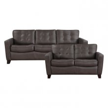 The retro-modern design that defines the Renzo Collection is a pairing perfect for your home’s living room. Brown top-grain leather covers the body of the love seat, everywhere the hand touches, with faux leather covering the remaining areas. Stitch tufting defines the seat surface and interior of the track-style arms, while the contoured rail framing lends visual accent to the face of the seats.