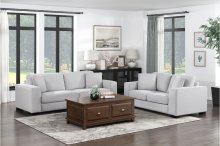 Bold modern lines define the profile of the Solaris Collection, an elegant study of minimalistic simplicity. Light gray textured fabric covers the love seat lending a perfect canvas for your living room’s modern décor. Matching toss pillows blend effortlessly with the collection’s refined aesthetic.