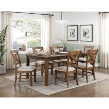 The transitional style and neutral hue of the Counsil Collection creates a perfect complement to your home’s casual dining room. The leg table’s cherry finish over acacia veneer highlights the wood’s distinctive grain. The table features a removable extention leaf.