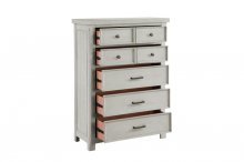 The Providence Collection’s lines and versatile finish create a classic addition for your bedroom. Oak veneer is finished in light gray, serving as a neutral canvas for your personal decorative preferences. The unfettered framed panel headboard and low-profile footboard serve as your bedroom’s focal point while antique black tone metal knob and bar hardware provide complementing contrast to the light finish of the dresser, nightstand, and chest.