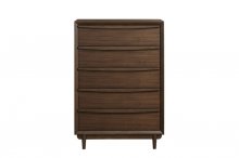 In a new take on Mid-Century Modern-inspired design, the Astrid Collection lends its deceptively understated bold look and creates an aesthetic that is both artful and timeless. A walnut finish is utilized over walnut veneer to solidify the classic style. The design of the framed-edge platform bed features clean lines and is complemented by the dark gray textured fabric that covers the padded headboard panels. The dresser, nightstand, and chest each feature wood drawer pulls that fully span the face of the drawers; their presence encompassed in the overall design of each piece. USB charging ports are mounted on the nightstand for convenient access to your electronic devices while both you and they recharge.