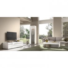 Effortless style with contemporary detailing defines the luxurious Mara Collection. Designed and produced in Italy with signature European flair, this pristine white 4-door TV stand boasts an exquisite acrylic lacquer finish that is both radiant and highly resilient. The spacious top is graced with a grey faux Carrara marble inlay for a truly timeless elegance. Four doors open to reveal two large storage cabinets, each with a fixed shelf to give you additional space for your devices, games, and films. Chrome detailing and a minimalist geometric profile allow the Mara to perfectly accent your living room while showcasing your refined style.
