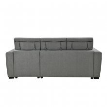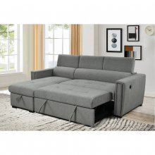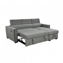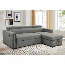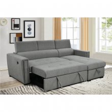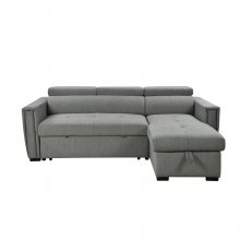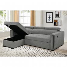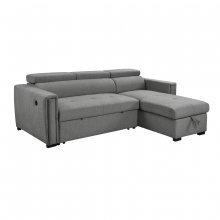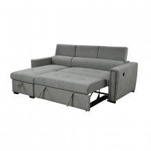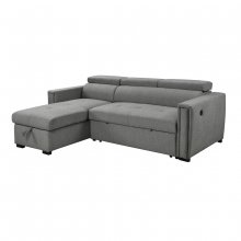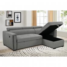 Embody contemporary living with the Carlotta Collection. Designed to cater to your evolving needs, this practical sofa-sectional provides a number of convenient features, including a reversible chaise that can be assembled on either side of the loveseat to best suit your room configuration. The chaise is designed with lift-top storage, granting an additional place to stow books, blankets, and pillows. Adjustable headrests allow you to optimize your comfort level as you relax, while a pullout sleeper integrated into the loveseat gives you or your overnight guests a place to rest easy. Stay connected with the world around you thanks to the built-in USB ports that allow you to discreetly charge your devices. Complete with metallic grey chenille upholstery and biscuit-tufted seat cushions, the Carlotta seamlessly fuses style and adaptability to keep pace with your modern lifestyle.