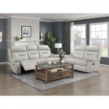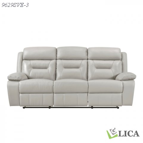 Designed with stylistic versatility and comfort in mind, the Laconia Collection’s addition to your home’s casual living room provides a comfortable gathering spot for your family and friends. The reclining ends of the sofa are engaged with a pull of the side mounted tab. The transitional frame of the sofa is covered in 100 percent top grain leather where the body touches, with faux leather covering the remaining areas, its silver hue complementing your home’s décor.