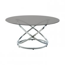 Modern from the black glass tabletops to the intersecting circular lines of the chrome-finished metal base, the Marion Collection’s contemporary aesthetic is sure to perfectly accent your living room. The collection is conveniently packaged to include a cocktail table, and two end tables.