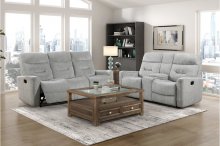 Your comfort is at hand in the design of the Lyndon Collection. The single reclining mechanism of the glider chair is engaged with a pull of the side-mounted tab. Gray chenille fabric upholstery covers the plush, subtle modern framing, furthering your comfort, and serving as a neutral palette for your living room décor.