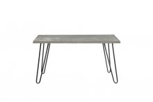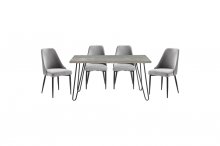 From its streamlined profile to the vibrant hues that contrast the table’s neutral finish, the modern design of the Keene Collection will blend perfectly with your dining room’s sleek aesthetic. A gray finish over oak veneer subtly highlights the distinct grain of the wood, while lending neutral contrast to the three available -blue, orange, and gray - velvet upholstered coverings of the accompanying side chairs. Black-finished hairpin legs support the table’s fixed top.