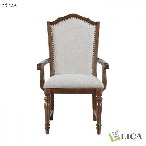 The subtle traditional design defines the profile of the Rexford Collection creates a timeless addition to your home’s formal dining space. The wood-framed arm chair features nailhead trim, and gray fabric upholstered seat and back. Cherry veneer is highlighted with a cherry finish solidifying the collection’s classic aesthetic.
