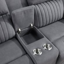 Convenience and comfort provide the basis of the design of the Dean Collection while the unfettered lines of modern design lend a casual air to the seating group’s profile. The love seat features dual reclining ends and has a console with cup holders and hidden storage space. Manual motion mechanisms allow for your reclined experience and are engaged with a pull of the side mounted tab. Gray polished microfiber presents as a neutral palette for your home’s subtle modern style.