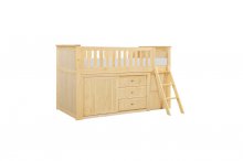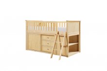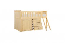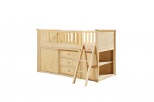 Maximizing sleep space is achieved with the stylish Bartly Collection. This transitional twin low-loft bunkbed is featured in a natural pine finish making it an appropriate choice for a number of youth bedroom settings. An angled ladder provides easy access to the loft platform. Providing below-the-bed storage are the dresser and bookcase, each specifically designed to fit within the parameters of the available lower space with the dresser providing shelf and drawer storage and the bookcase allowing for open display of your child's favorite books and collectables.