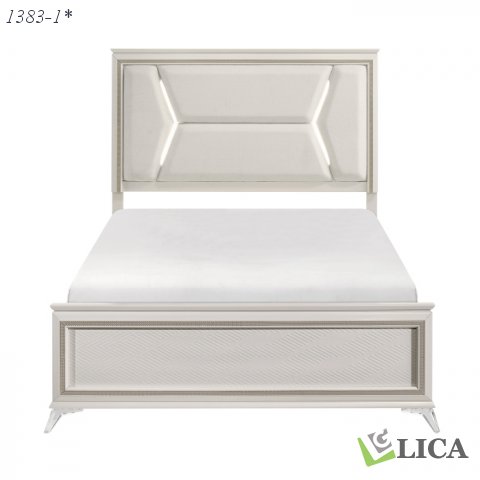 - Chenille upholstered headboard with LED lighting