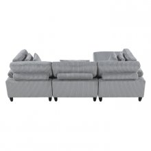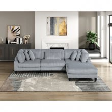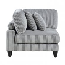 Create a versatile and inviting living space with this gray corduroy 4-piece modular sectional, featuring a convenient ottoman for added comfort and flexibility. This sectional boasts foam padding over pocket coils for exceptional support and soft corduroy fabric upholstery for a plush, cozy feel. The modular design, including two corner seats, one armless chair, and an ottoman, allows for customizable arrangements to perfectly fit your room. Reversible back and loose seat cushions extend the life of your sectional, while removable cushion covers with zippers simplify cleaning. Five matching pillows are included for added style and comfort. Solid wood
