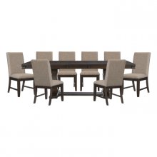 An elegant blend of traditional styling and rustic aesthetic combines to create the look of the Southlake Collection. The rectangular tabletop is supported by a double pedestal base, it’s urn profile lending distinct accent to your dining room. The wire-brushed rustic brown finish highlights the oak veneer. The brown linen-covered seats and backs of the side chairs provide complementing contrast to the table. An available bench provides an alternate seating option. The available server provides ample behind door and drawer storage in which to stow your tabletop accessories. The server doors and drawers feature nickel bar and knob hardware.