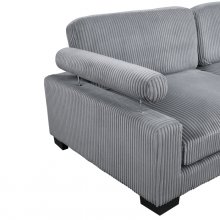 Configurable to your available space, the Traverse Collection allows for the addition and detachment of pieces for a customized seating experience. The 4-piece sectional configuration consists of one corner unit paired with two armless chairs, and an ottoman. The plush gray corduroy fabric upholstery creates a plush expanse for a soft touch experience.