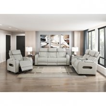Experience the ultimate in relaxation and convenience with this taupe faux leather power reclining chair. Designed to provide unparalleled comfort, this chair features power reclining, an adjustable power headrest, and ambient LED lighting. Enjoy your favorite beverages with built-in cup holders, keep your devices charged with USB ports, and store essentials in the top and side storage arms. The modern taupe faux leather upholstery with diamond-stitched detailing adds a touch of sophistication, making this recliner a perfect addition to your home theater, living room, or personal relaxation space.
