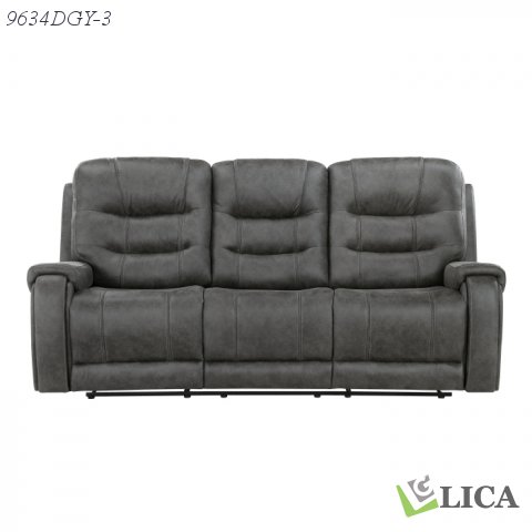 A subtle modern profile is combined with plush seating to create the design of the Oberon Collection. The sofa features dual reclining ends. Manual motion mechanisms allow for your reclined experience and are engaged with a pull of the side mounted tab. Dark gray polished microfiber covers the collection, its neutral hue offering a warm balance to your living room’s décor.