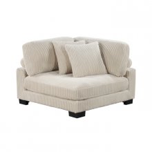 Configurable to your available space, the Traverse Collection allows for the addition and detachment of pieces for a customized seating experience. The 4-piece sectional configuration consists of one corner unit paired with one armless chair, a chaise, and an ottoman. The beige corduroy fabric upholstery creates a plush expanse for a soft touch experience.