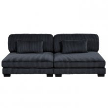 Configurable to your available space, the Traverse Collection allows for the addition and detachment of pieces for a customized seating experience. The 4-piece sectional configuration consists of one corner unit paired with two armless chairs, and an ottoman. The plush black corduroy fabric upholstery creates a plush expanse for a soft touch experience.