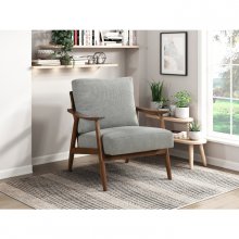 Bring a touch of classic mid-century modern design to your living space with this stylish wood accent chair. Featuring a slatted backrest crafted from rich, dark-stained wood, this chair offers a unique blend of visual interest and airy comfort. The soft, textured fabric cushions in a neutral tone provide a comfortable seating experience, while the clean lines and tapered legs embody the timeless elegance of mid-century aesthetics. Perfect for adding a sophisticated touch to your living room, reading nook, or bedroom, this chair effortlessly combines style and functionality.