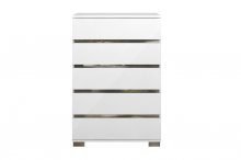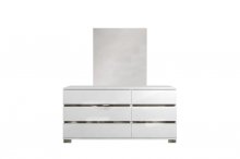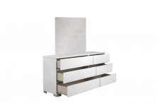 Your bedroom will feel like a sophisticated haven with the Dream 6-piece Upholstered Rhombus Bedroom Set's understated elegance. Making use of modern Italian design principles, this stately bed uses sleek lines and a minimalist profile to create uncluttered serenity in your contemporary bedroom. Glossy acrylic lacquer protects a shining white finish accented with polished chrome, all of which promotes a sensation of openness and brightness in your bedroom. The center of the extra-wide headboard is upholstered in an icy faux leather covering that is further embellished with a diamond-stitched design, creating an expansive, visually impactful surface. The accompanying case pieces are unmarked by any hardware for a clean and trim appearance, and the soft-closing mechanism further serves to emphasize the efficient, no-nonsense design. Aptly named, the Dream Bedroom is a collection for those who dream of minimalist luxury.