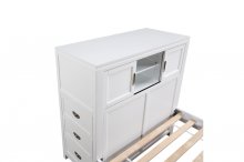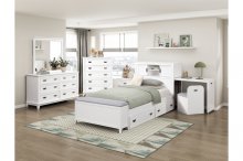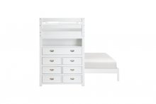 Transform your child's room with this multifunctional white furniture collection. It features a space-saving bookcase bed, foam-cushioned stool, and organized storage, along with a loft bunk bed with built-in drawers and a roll-out hidden study desk. Complete the look with a white storage drawer, stylish nightstand, 6-drawer dresser, 5-drawer chest, and elegant wood-framed mirror—all crafted with durable materials and sleek finishes. Each piece combines style and practicality for an organized, clutter-free, and sophisticated bedroom.