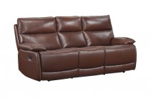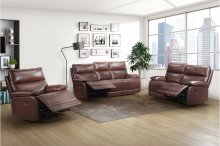 Make every night feel like a special occasion with the the Morocco 3-piece Reclining Set's luxurious styling. This collection is dressed in exquisite top-grain leather upholstery on the front surfaces and high calibre leather-match on the backs and sides for a refined look and feel that emphasizes quality. A rich cognac brown finish exudes timeless elegance, especially when paired with subtle tailored stitching and piped seam accents. Foolproof reclining offers an easy relaxation experience, allowing you to stretch out with minimal effort once you pull the side-mounted latch, plus the recliner's glider mechanism provides a gentle back-and-forth motion that is surprisingly soothing. Complete with sturdy framing and pillowy arms, the Morocco has been meticulously crafted to guarantee your comfort.