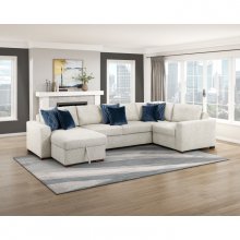 Create a welcoming and versatile living space with the expansive sectional with chaise. This modular sectional features a flexible configuration including two-seaters, a one-seater, a corner seat, and a chaise with convenient hidden storage and a drop-down back, allowing you to arrange it to perfectly suit your room and needs. Upholstered in a durable, textured microfiber, this sectional offers both comfort and resilience for everyday living. Sink into the supportive high-density foam padding over pocket coils, ensuring a comfortable seating experience for family and guests. Accented with solid wood feet in a rich espresso finish and complemented by eight included décor pillows, the sectional is a stylish and functional centerpiece for any modern home.