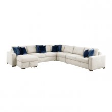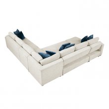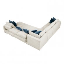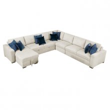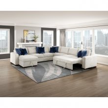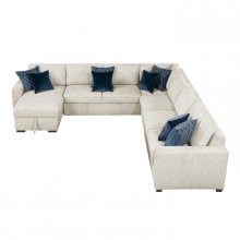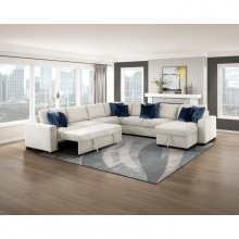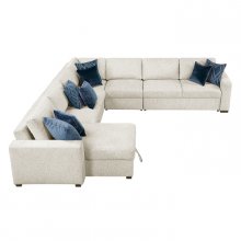 Maximize both seating and functionality in your living space with this expansive 5-piece sectional featuring a convenient pull-out bed and a chaise with hidden storage. Upholstered in a soft and durable textured microfiber, this modular design includes a comfortable 1-seater, a spacious 2-seater, a cozy corner seat, another versatile 2-seater with a hidden pull-out bed, and a chaise offering discreet storage. Perfect for large families, frequent entertainers, or those needing extra sleeping space, this sectional offers exceptional adaptability. Built with a sturdy plywood frame and featuring high-density foam padding over pocket coils for lasting comfort and support, this set is finished with solid wood feet in a rich espresso hue and includes eight plush décor pillows for added style and comfort.