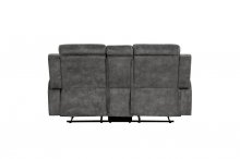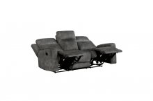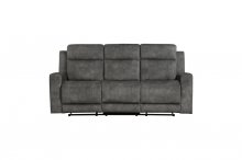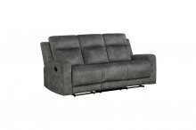 The Muncie Collection pairs subtle modern lines with classic comfort, creating a seating group perfect for your casual living room. The dual ends of the sofa and love seat, and single reclining of the chair, are engaged with a pull of the side mounted tab, taking your seated experience to the next level of comfort. Dark brownish-gray textured microfiber covers the collection lending soft touch and decorative versatility. The love seat features a console with dual cupholders and hidden storage.
