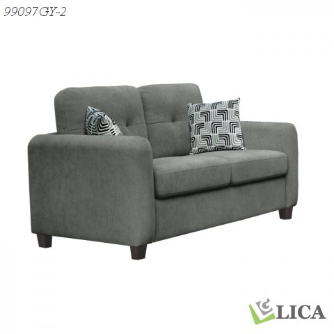 Simple, stylish, and built for everyday use, the Valette Collection blends modern comfort with timeless design. This loveseat adds tasteful seating to your living area and looks great doing it. Upholstered in soft textured grey fabric with biscuit-tufted back cushions providing a subtle tailored look, this classic design has a hint of retro charm, especially with the rounded track arms and the fun patterned décor pillows. Whether you’re bingeing your favourite book or show, hosting friends, or relaxing with family, the seat cushions offer the perfect trifecta of support, softness, and structure. Durable frame construction is also top of mind, ensuring this loveseat will hold up over time. The Valette doesn’t just fill your space – it elevates your room with everyday ease.