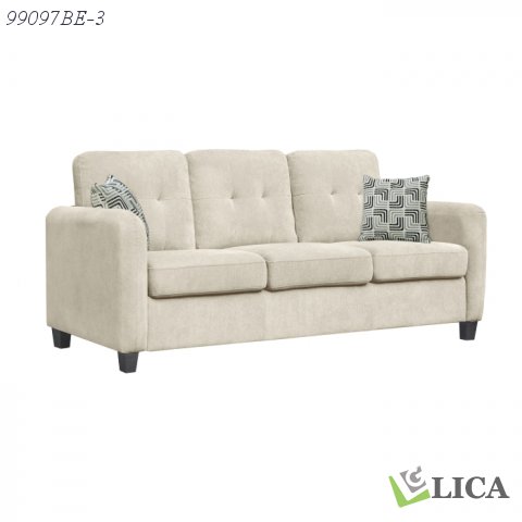 Simple, stylish, and built for everyday use, the Valette Collection blends modern comfort with timeless design. This sofa adds tasteful seating to your living area and looks great doing it. Upholstered in soft textured beige fabric with biscuit-tufted back cushions providing a subtle tailored look, this classic design has a hint of retro charm, especially with the rounded track arms and the fun patterned décor pillows. Whether you’re bingeing your favourite book or show, hosting friends, or relaxing with family, the seat cushions offer the perfect trifecta of support, softness, and structure. Durable frame construction is also top of mind, ensuring this sofa will hold up over time. The Valette doesn’t just fill your space – it elevates your room with everyday ease.