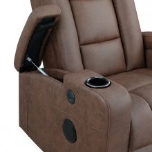 Relaxation has a new best friend – meet the Atium Collection. Designed for leisure with all the modern bells and whistles, this power recliner transforms your downtime into a full-on experience. Wrapped in soft brown textured microfiber upholstery with generously padded cushioning, this seat offers the perfect blend of support and style with a contemporary profile and a neutral palette for any décor preference. At the touch of a button, the side-mounted power control allows you to pick your favourite reclining position. Stay connected and fully charged with the built-in USB port and the wireless charging pad to power two different devices at once, and stow them in the hidden armrest storage compartments when not in use. You can play your favourite tunes with the integrated Bluetooth speakers and pair them with the ambient glow provided by the LED lighting at the chair’s base for a more immersive experience. All the while, keep your drink chilled in the cooling cupholder. More than just a seat, the Atium is the star attraction of any modern living room that appreciates unplugging and recharging.