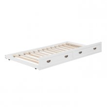 Expand your sleeping capacity instantly with this versatile wood trundle bed, the perfect space-saving addition to any bedroom or guest suite. Available in timeless navy blue, classic white, or modern gray finishes, it tucks neatly beneath most standard bunk or platform beds. Engineered for convenience, it features smooth-gliding casters for easy access and a sturdy frame that ensures a comfortable night's rest for overnight guests without occupying extra floor space.