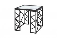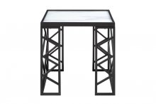 Black metal framing rises to support the white marble-print tempered-glass tops of the Astral Collection, the frame’s intersecting lines creating a distinctly modern profile for your living room. The collection is conveniently packaged to include a cocktail table, and two end tables.