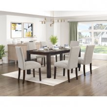 Elevate your dining experience with this sophisticated upholstered side chair, a perfect blend of classic charm and modern durability. Built on a wood frame, the legs feature a distinctive wire-brushed brown finish that adds rustic character and warmth to the piece. The chair is wrapped in premium textured fabric upholstery, offering both soft comfort and visual depth that hides wear well. Accented with metallic nailhead trim tracing the silhouette, this parsons-style seat adds a touch of refined luxury to any dining table. Whether for formal dinners or casual family meals, this sturdy seating option ensures style and support for every occasion.