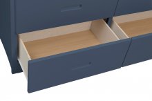 Elevate your children’s room with this premium blue furniture collection, a masterclass in space-saving functionality and contemporary design. Expertly crafted from wood and engineered wood with a protective UV-finished veneer, each piece—from the sturdy twin-over-twin bunk bed and rolling trundle to the high-capacity storage chests—features a vibrant, fade-resistant finish. The collection prioritizes safety and organization, incorporating high guard rails, smooth-gliding dovetail drawers, and a choice of polished chrome hardware or integrated cutout handles. With several storage units arriving with no assembly required and a coordinating minimalist wall mirror, this durable set offers a sleek, clutter-free solution that brings a sophisticated pop of color to any modern or coastal home.